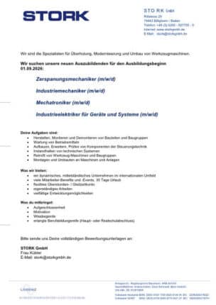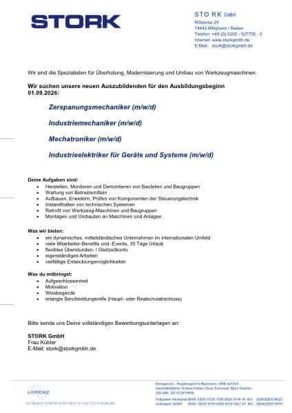 Unternehmen aus der Region bieten wir hier eine Möglichkeit, Stellenangebote für Ausbildungsplätze zu veröffentlichen. Für die Inhalte der jeweiligen Stellenangebote sind die Betriebe selbst verantwortlich.