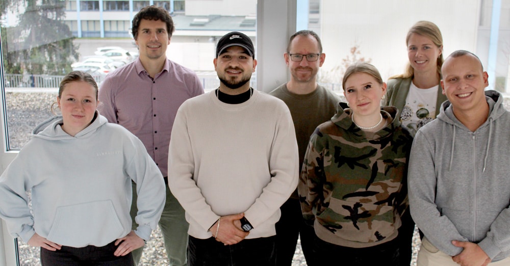 Die SMV stellt sich vor. Von links nach rechts: Eliana Di Siro, Kai Schwaderer, Mehmet Yildirim, Simon Röckel, Klara Ott, Maike Spalthoff, Ilirian Rexhepi